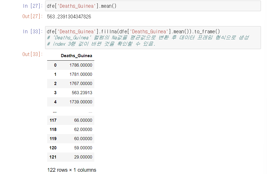- Na 값을 머신에게 학습시키기 위해 처리.