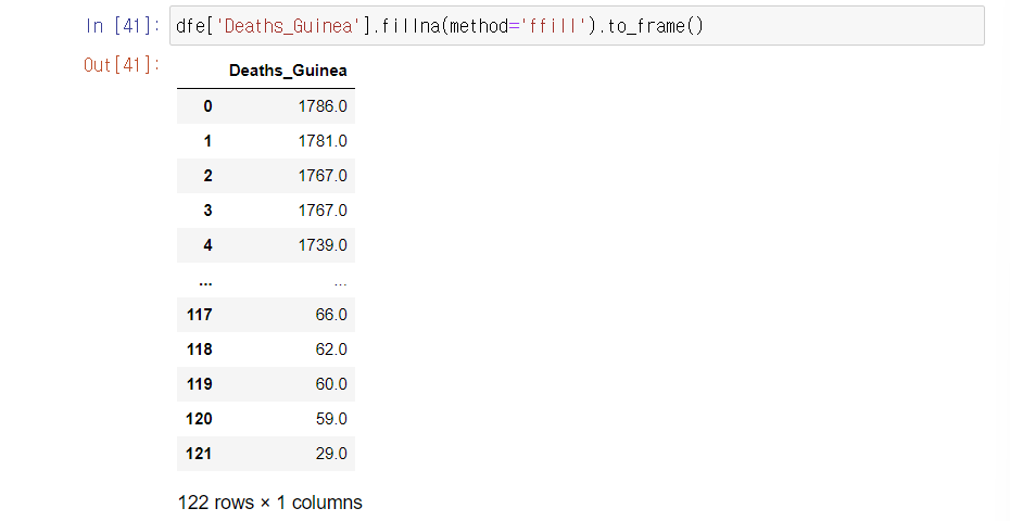 - ffill: 누락값이 바로 이전 값으로 변환됨.
