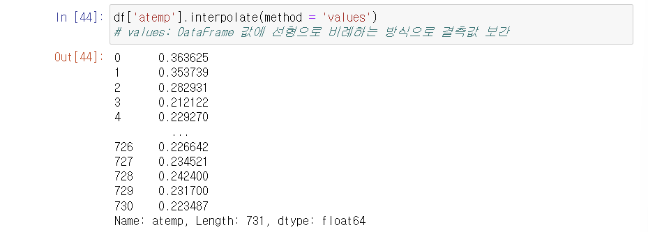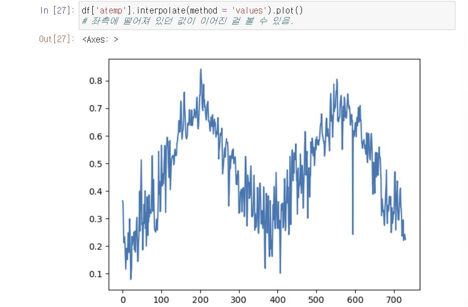 - 수업 시간에 배운 linear, slinear, cubic, spline, time을 제외한 method로 코드를 실행해 보겠습니다.