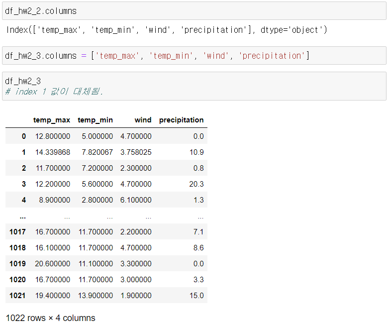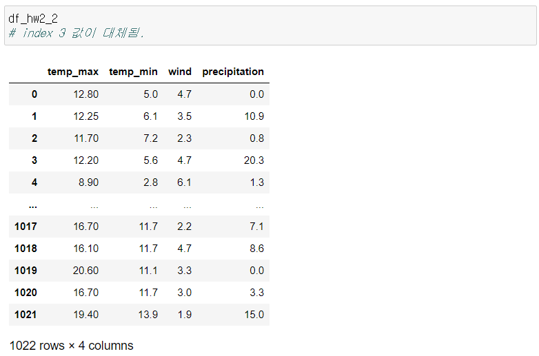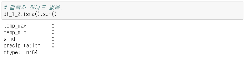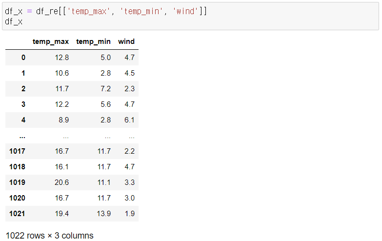 - 이외 사용할 컬럼은 temp_max, temp_min, wind.