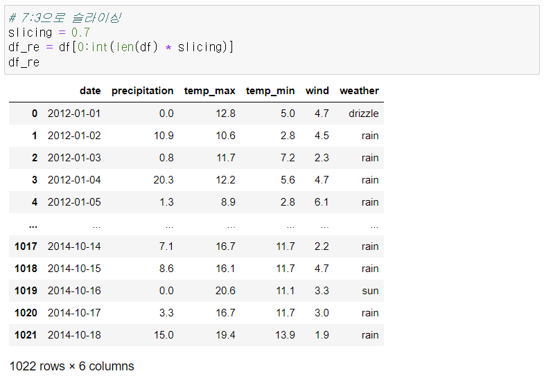 - 따라서 인덱스 기준으로 데이터 분리해서 진행. (전체 데이터 중 7:3 비중)