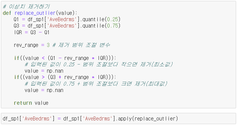 1-2. 이상치 제거 - 열 AveBedrms 기준
