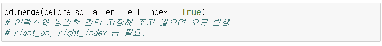 - 시계열 인덱스 기준, 날짜 기준으로 데이터 붙이는 경우.