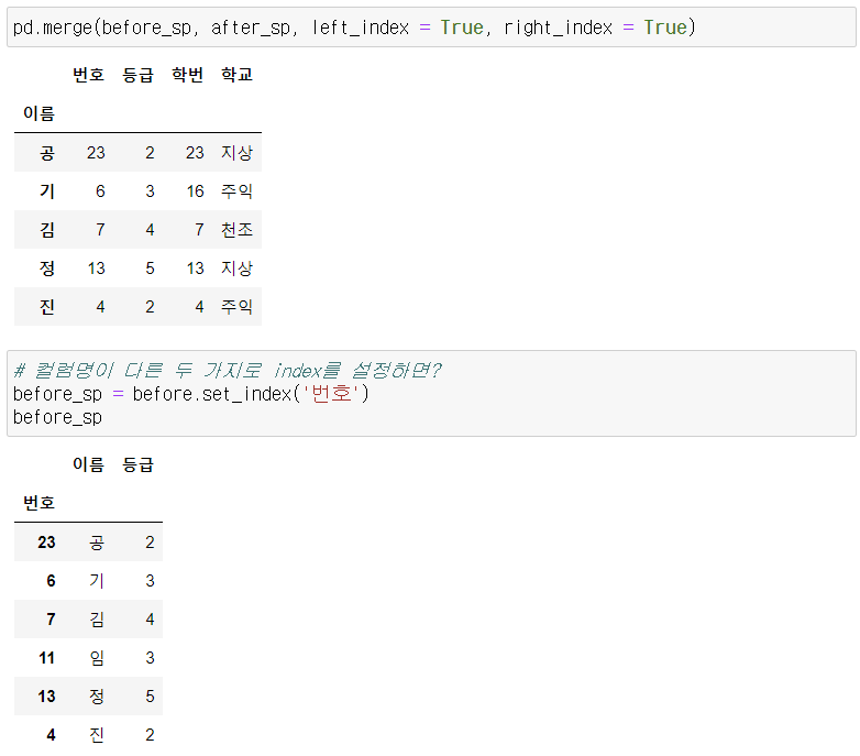 - right_index: 오른쪽 데이터프레임의 join 기준 index 사용할지 여부.