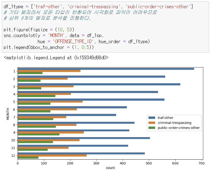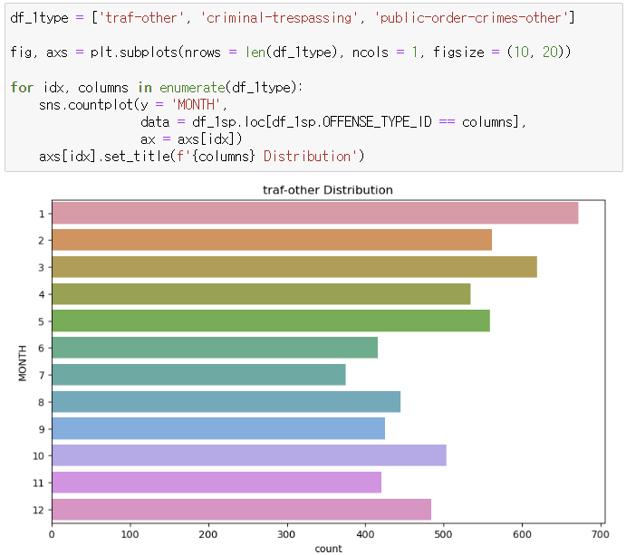 - 연월을 종합하여 파악했을 때 범죄 비율 상위권을 확인할 수 있었다.