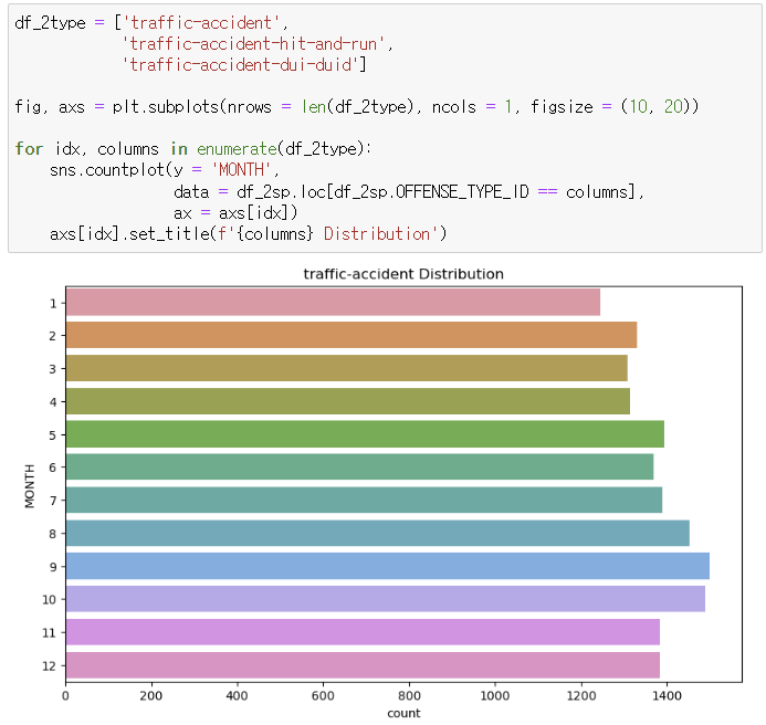 - 교통사고는 하반기에 발생 건수가 더 많은 것으로 확인된다.