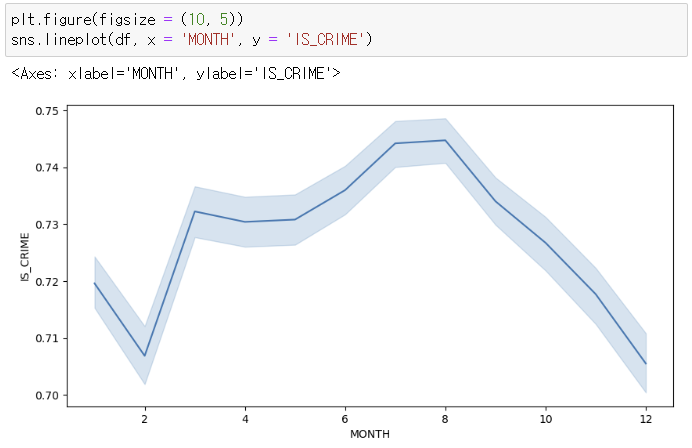 - 월별 추세 분석 결과 범죄 비율을 확인할 수 있었다.