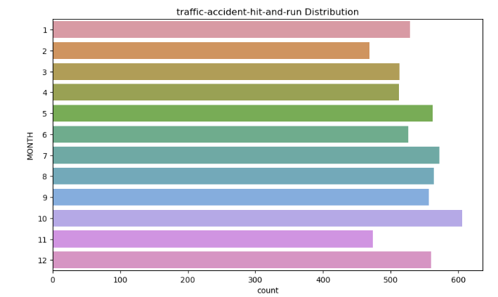 - 뺑소니는 1, 3, 5, 7, 10, 12월에 많은 건수를 나타내며, 대체로 2개월에 한 번씩 높은 건수를 나타낸다.