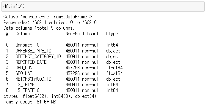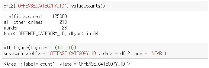 - 그 중 가장 건수가 많은 것은 교통사고이고, 해당 범죄의 카테고리는 범죄명과 동일하다.