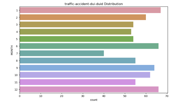 - 음주운전은 1, 6, 12에 많은 건수를 나타내며, 대체로 6개월에 한 번씩 높은 건수를 나타낸다.