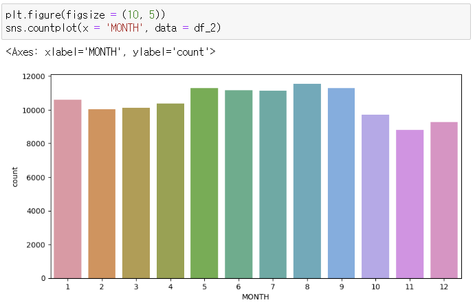 - 건수로 시각화를 진행한 결과 5~9월이 높은 건수를 타나태고 있다.