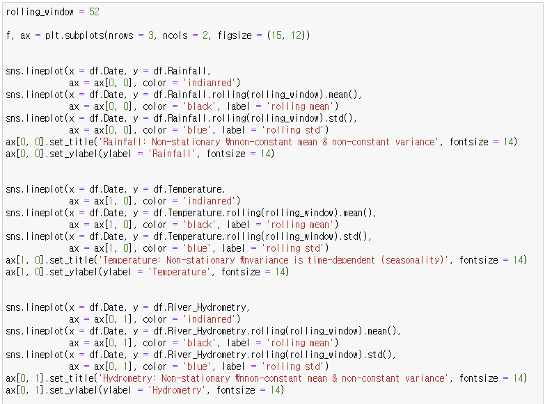 - 통계 테스트: Augmented Dickey Fuller 테스트 먼저 시각적 확인을 해보겠습니다.