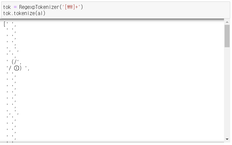 - 제시한 정규 표현식에 해당하는 단어 단위로 토큰화 진행.