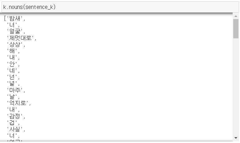 - nouns(phrase): 주어진 텍스트를 형태소 단위로 분리해서 명사만 반환.