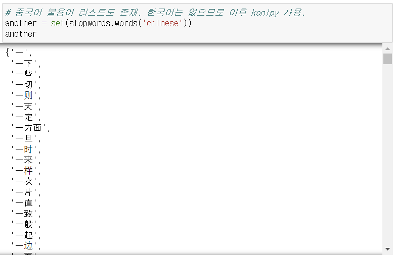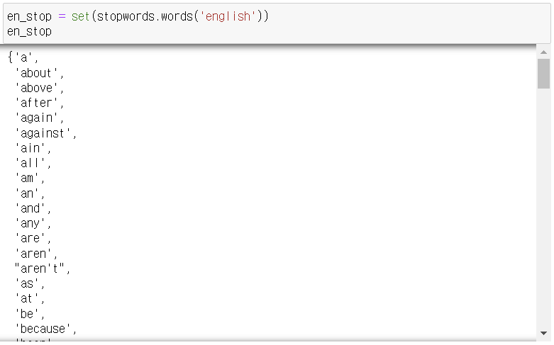 - 불용어 리스트를 불러와서 해당 리스트에 없는 단어만 추출하여 반환.