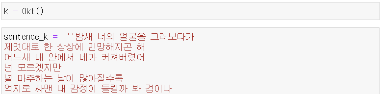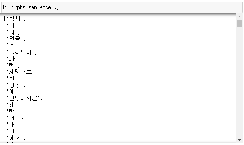 - morphs(phrase): 주어진 텍스트를 형태소 단위 분리.