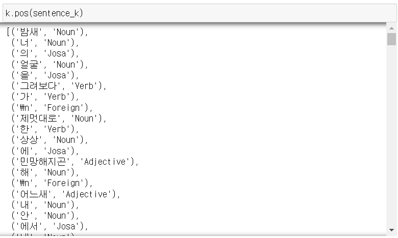 - pos(phrase): 주어진 텍스트를 형태소 단위로 분리해서 동사만 반환.