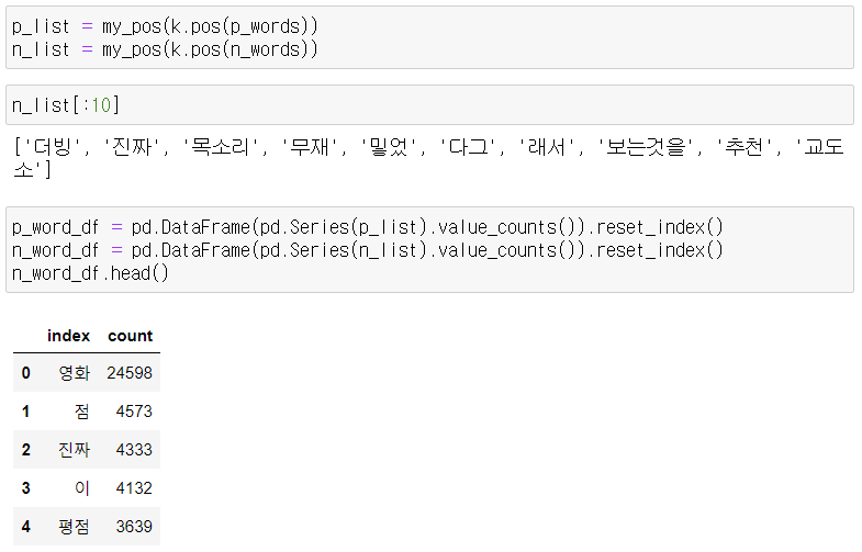 - 영화 리뷰 konlpy 이용해서 명사, 동사 추출하고 의미 있는 단어 분석.