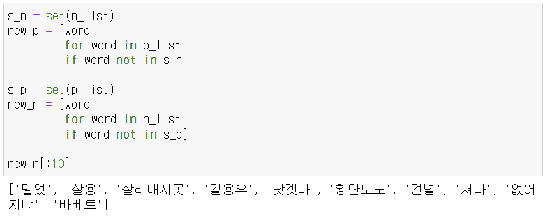 - 두 리스트에 동시에 속한 원소를 제외하고 재분석 진행.